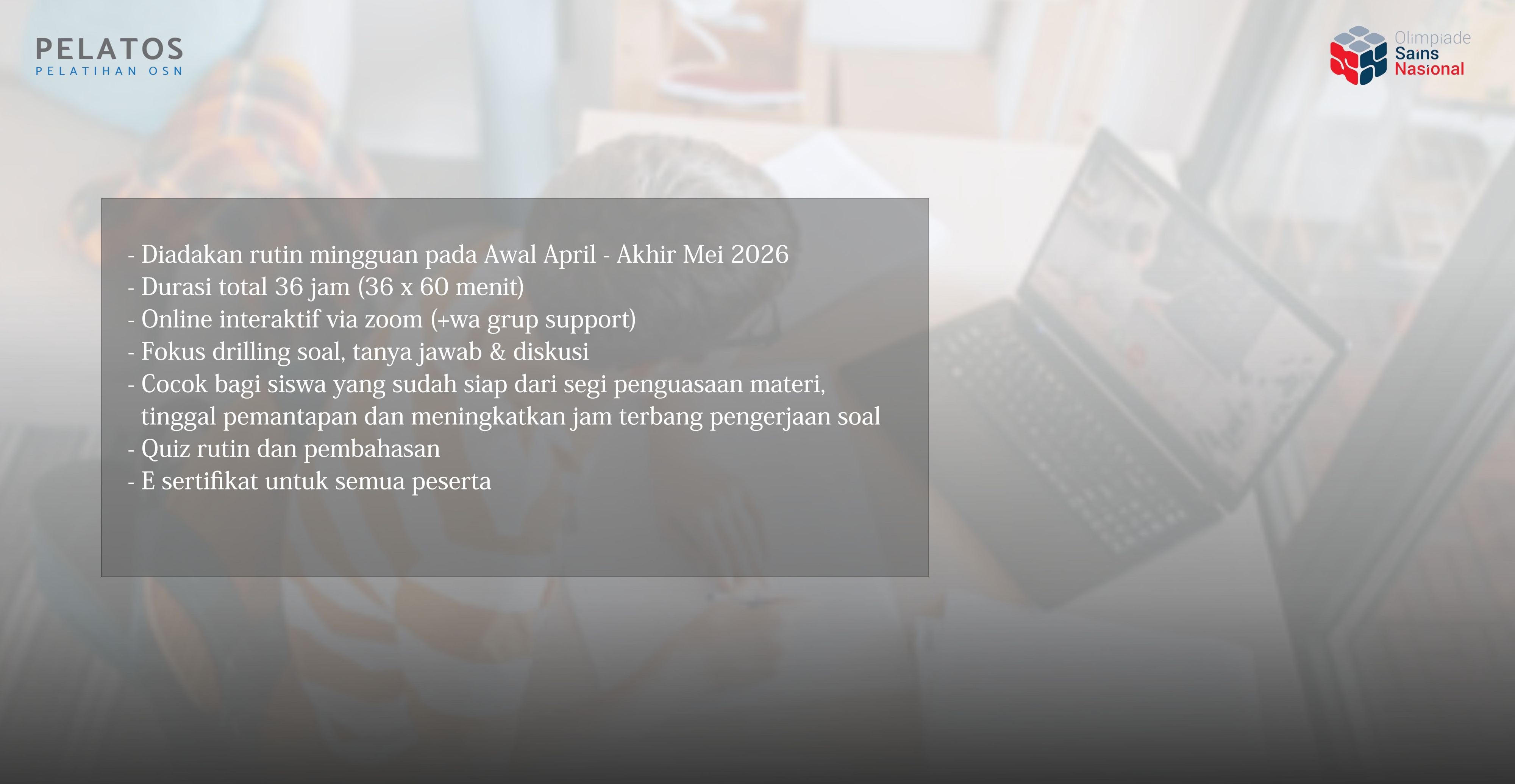 Pelatihan Rutin Online OSN-K 2026 tingkat SD/SMP/SMA level advance (kelas Sabtu & Minggu malam)